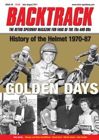 ![]() ISSUE 45 of Backtrack, the bi-monthly retro speedway magazine, is out now and includes� GOLDEN HELMET He�s not quite as old as the Golden Helmet itself, but John Berry has seen plenty of the match-race championship in all its various guises. Here he looks back at its origins and the pro�s and con�s of what for many years was one of the sport�s most coveted titles. Following JB�s intro, we present an in-depth six-page history of the Golden Helmet in the Backtrack era, spanning from its reintroduction in 1970 until its demise in 1987, the year the Helmet was stolen. Whether it was the meeting-by-meeting challenge or the monthly best-of-three contest between 1974 and 1984, we reproduce all the results, plus pictures of some of the main protagonists and anecdotal highlights. DENZIL KENT INTERVIEW For years very few knew of the whereabouts of Denzil Kent or what had become of him since the mid-80s. But we tracked him down in Johannesburg, where the former Canterbury favourite tells Backtrack about his all too brief racing career, his personal struggles away from the track and how he hopes to lead a South African speedway revival.