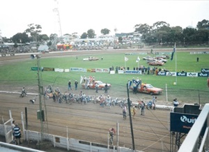 "Sad to say that Claremont Speedway closed in 2000 although the arena lives on as its other identity, the Claremont Showgroungs, the main showground in the city of Perth." "Just some info. Claremont Speedway opened on 14 May 1927 and had its final meeting on 31 March 2000 making it Australia's longest running speedway. The track was some 561 metres (614 yards) long. It was initially used for bike racing and the biggest star in the early years of the speedway was Sig Schlam. Due to its size it also catered to car racing with Speedcars (Midgets), Saloons and Super Modifieds (which in the 1970's became Sprintcars). The track was a regular host of the Western Australian Solo Championship until its closure and saw many great home grown riders such as Chum Taylor and his son Glynn, David Cheshire and Glenn Doyle. Claremont also hosted the Aussie title of just about every category run in Australia from Solos, Sidecars to Sprintcars, and in 1987 hosted the only official World Sprintcar Championship ever run. Claremont was promoted as "The National Capital of Speed" and with its sheer size few would dispute that claim."