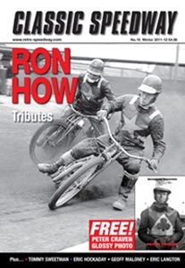 ISSUE 15 (Winter 2011-12) of CLASSIC SPEEDWAY, our quarterly retro speedway magazine, is out now... RON HOW Tribute From pauper to prince, Ron How came a long way in life and on the track. we recall the successful career of the former Wimbledon and Oxford star and eight times World Finalist. One of the quiet men of speedway and one of the most underrated of England's major talents, Ron How has died aged 81 after a long and brave battle with prostate cancer. From a self-confessed peasant farming family in Little Missenden, Buckinghamshire, he rose to be world class during a speedway career that lasted for 15 years, spanning the 50s and 60s. One of the many tributes to How came from four times World Champion Barry Briggs, a rival while Ron was at Harringay and a team-mate of his with Ronnie Moore, at Wimbledon. "It's really sad," said Barry. "His record doesn't really show how good he was as a rider. He was hard, but fair, an all-round good bloke. I'm sure Ove (Fundin) feared racing Howie more than he did us, because he was an out-and-out trier. His ready laugh will be sorely missed." ERIC HOCKADAY Exclusive interview Eric is truly a man for firsts. And as we reveal, not just the very substantial proportion of firsts past the finish line he recorded during a 17-year career in speedway. Eric Hockaday, who celebrated his 82nd birthday in September this year, was deeply involved, in one way or another, in some of the sport's most significant events during the turbulent years of the 60s. Eric rode in the Provincial League's first match in 1960. With several years experience behind him, including appearances at the top level with National League Coventry, he was snapped up by eventual PL champions Rayleigh and proved a major points scorer. Some four years later he should have ridden for new club Cradley Heath at Exeter, in the notorious fixture which launched the PL's rebellion against authority. Like many other riders, including some Dudley Wood team-mates, he was at first reluctant to ride 'black' and hesitated before throwing in his lot with the Provincials. When another 12 months had passed, and the bitter rift between the sport's rival competitions had been healed, Eric was again in pole position when speedway history was made. For the first-ever British League fixture at Coventry's Brandon Stadium, he rode for Cradley in the very first heat. TOMMY SWEETMAN Q&A The former New Cross, Wolverhampton, Exeter and Hackney rider looks back. Recalling the happiest periods of his career, he says: "Seasons 1963 to 1966 inclusive. During this period I captained the Wolverhampton team to the Provincial League championship, won individual open meetings, won three World Championship rounds and gained international honours for England and Great Britain. I also promoted at Rye House, ran my own optical business, went through the transition into the British League successfully, competed in the British League Riders' Championship Final and generally enjoyed myself. I maintained an average of between 8.6 and 9.2." ERIC LANGTON: Legend A selfless legend who put his beloved Belle Vue team before personal glory, we profile the great Eric Langton, who came so close to becoming the first World Champion. He said: "I retired in 1947 when I was 40. I realised that I probably wouldn't improve much more and it was best to get out while I was still at the top. I suppose my career was successful considering the amount of money I earned and the number of trophies I won. My career was immensely satisfying. "I have always thought that determination was the principal characteristic in the make-up of the successful speedway rider and thought I possessed enough of that. But meeting Tommy Price (England's first World Champion in 1949) socially here in Perth recently made me realise how lacking I had been, and how well endowed with great determination he was. It carried him to the top." Plus... Ian Hoskins on his father Johnnie's BRADFORD discovery and John Hyam on the lone survivor from the first ever World Final, JACK ORMSTON. Tributes to PAT CLARKE, NEIL STREET, JIMMY WRIGHT, DUDLEY McKEAN. SECOND STAR - this time it's Rayleigh Rocket GEOFF MALONEY. Speedway's brief trial at AYR in Scotland. Your letters and the 1970 EASTBOURNE EAGLES in full colour. And our latest quiz - can you name the riders in our 60s line-up and the identity of the two body colours?