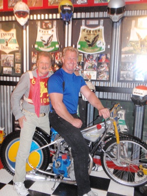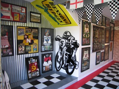 I recently spoke with Steve Luxton about his fantastic Speedway garage museum. Steve would like to share his Speedway memorabilia with the fans of Speedway-Plus. This is his story about the - Garage Mahal II (The New Beginning) Steve is a Speedway enthusiast that was born in Exeter, England and was taken to a speedway meeting in the summer of 1974 by his cousin. Steve picks up the story from here. "I started going every week after that until I moved to the USA in 1987! Scott Autrey and Steve Gresham were my heroes and Mauger of course! I fell off the speedway map when I moved to Florida, but my love for the sport was reignited on a trip back home to the County Ground in 2002. My collection started shortly after that when Exeter Legend Michael Coles came out to the states for my wedding and gave me a Falcons race jacket. Ebay got me started but since my collection has grown I have received things from riders that would rather see me display their things than keep them in a box somewhere! Exeter's Krister Marsh , Poole's Neil Middleditch and Ivan Blacka have all sent me some prized items this year and being such a fan of those guys and the sport, it just blows me away!! I've got some special things from some great people, but the one thing/s I have is Malcolm Brown's entire race kit! Leathers, facemask, gloves, boots and scarf! Malcolm lives close by but it took me over a year to track him down, but now we are great friends and my whole family just loves Brownie! I had the idea for The �Garage Mahal� even before we built our house, so most of the things were planned way ahead, and only money held things back! We sold our house this year and I'm now rebuilding the Garage Mahal II and having fun doing it. I've never been the kind of guy that just collected just to collect and I've got a deal with any rider that ever wants his gear back is all they have to do is ask" People from all continents can visit this wonderful Speedway Garage for free on their visit to Florida. Contact Steve Luxton at sjluxton@comcast.net to arrange a tour on your next visit to Florida. The garage is located in Jupiter, Florida and is close to West Palm Beach two hours south of Orlando. Don't forget to bring a 6 pack along for a nice drink and chat about his Speedway collection that is one of a kind. Any riders or supporters that would like to donate any merchandise to be displayed can contact Steve Luxton. Anything to do with Speedway will be much appreciated to make this grow into the biggest display on the east coast. Here is a selection of pictures from Garage Mahal II:
