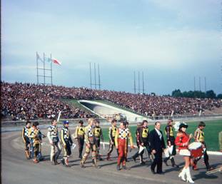 The Hackney bikes stayed at the stadium overnight in the workshop, which also housed the Gdansk team bikes. Their bikes were looked after by a team of full-time mechanics. And so ended the Friday and we went back to the hotel for a bit of a rest and to talk about what we were going to do that night, it was decided that we would go out for a meal and call it a day. On the Saturday morning it was down to the track to get the bike ready for the Hackney team to arrive in the bus. The riders had a practice before the meeting to get used to the track. Everything went well and the riders were happy and with a few minor adjustments to the bikes - all was ready. The meeting started with a parade involving all the riders walking around the track and then returning to the pits.