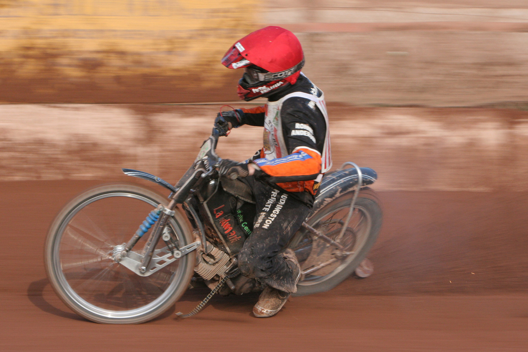 This was just a normal run of the mill shot from a Glasgow v Redcar match at Ashfield. I was working at the fourth bend about the middle of the meeting. The third and fourth bends get some great light during the meetings at Ashfield. I was following William round and as he entered the last bend he started to drift out wide and slow down. It turns out that he had snapped his primary chain, nothing unusual about that, it was only when I looked at the photographs later that night I noticed that this photo was taken just after his chain snapped. If you look in front of his chain guard you can see the chain being spat out, so in a way this became a good shot it is just a pity it is a little bit soft as the focus is just a bit off but sometimes the good shot is not perfect.