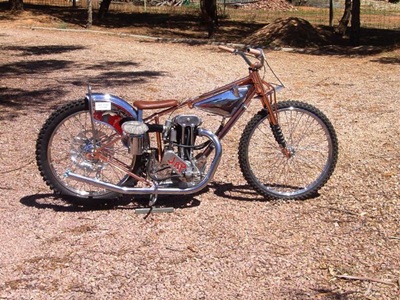 Here it is - finally after over 12 months hard work is the Mitchell JAP that Jack Young won the 1951 World final on, it's all finished restoration except for fitting the rear chain which I have left off for ease of moving. I have spoken to the Birdwood Motor Museum who are interested in taking the bike so all interested people can see it. It has come out pretty well I think - even though the pictures were taken as I wheeled it out the shed it still has my finger marks all over it and needs a good clean! My first job apart from thanking those that have helped with the restoration and keeping it quiet is to take it to Lindsay Mitchell so he can see it finished - the last he saw it was when I took it to him as I got it from England and he identified it as the Mitchell JAP built by his brother Clem & Lindsay that Jack Young rode at Wembley to his first title in '51. Lindsay and Thelma his wife are not going the best at present so I am hoping this will cheer him up a bit - when he hopped on it the first time I took it to him I think he dropped 35 years off his age. I have also included a picture of the AJW that Jack Young rode in Australia in 1950 that I have had for a couple of years now.