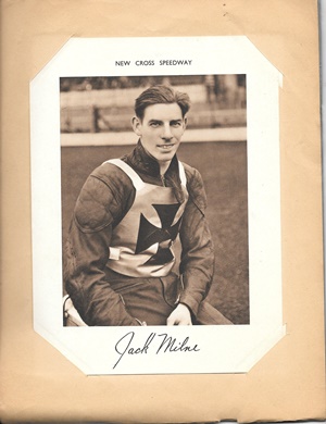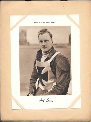 New Cross Picture Album 1936 Doris Lambert inherited an old scrapbook filled with speedway photographs when her Dad died in 1984. A recent house move forced her into a clear out and she was keen to ensure that her Dad's book went to a good home. Thankfully she has passed it on to us. Thanks to Doris and her Dad, we can bring you some great autographed photographs of the New Cross Rangers team of 1936. Clcik on the pictures to see them in a larger size.