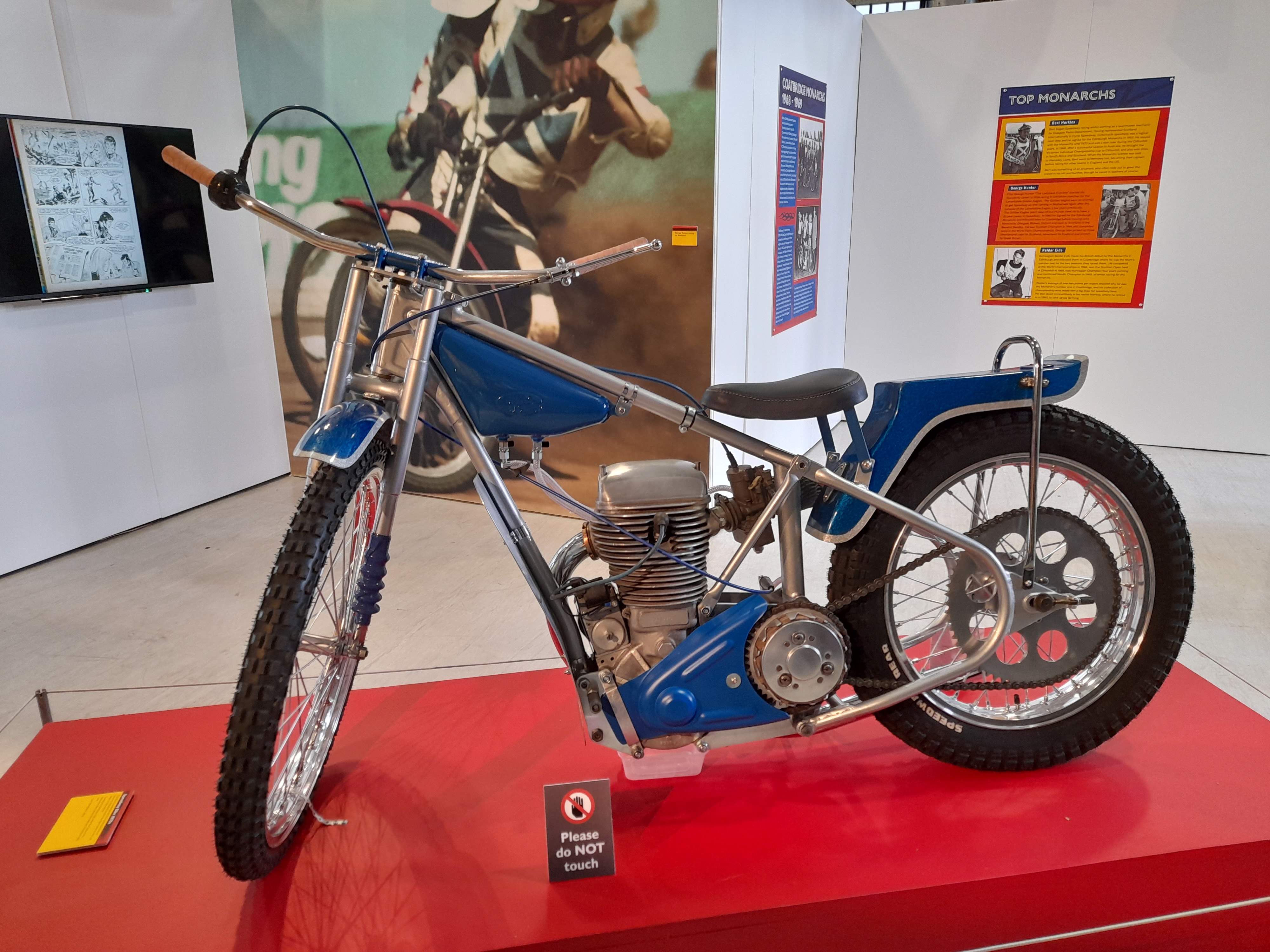 Cinder Kings Speedway Exhibition The Cinder Kings speedway exhibition is running at Summerlee Museum in Coatbridge until the end of October 2021. It's a celebration of speedway in Lanarkshire at Motherwell and Coatbridge and features a number of interesting items, loaned to the museum by luminaries such as Brian Collins and Bert Harkiins. Admission is free but must be pre-booked via the museum's website. Here are a few pictures of the exhbition to give you a flavour of what you can expect to see. Click on the picture to see it in a larger size. ![]()