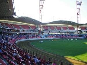 "The length of the track is roughly the same size as the old Sydney Showground Speedway (Speedway Royale) which sadly closed in 1996, There was an Australia vs USA match (unofficial) test there in 1999 but generally the only speedway that takes place there these days is demonstration runs by vintage cars during the Sydney Royal Easter Show." "I have to correct the info in my previous comment. The Sydney Showground at Homebush (the 2000 Olympic Baseball Stadium) is not the same length as the old Showground. The old one was 509m (557 yards) while the new showground is about the same length as the Ekka (Brisbane Exhibition Ground) at 450m (492 yards)."