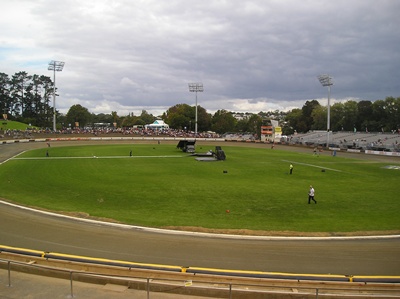 Geoff Boxell:"Practice! 2 days given for practice to allow for jet lag & it being the first time SGP held there. Western Springs used to be a fast bike track shared with various car classes but the bike stopped running when the lime/pumice track was replaced by a red sticky clay one. The SGP track is a lay down/rip up track."